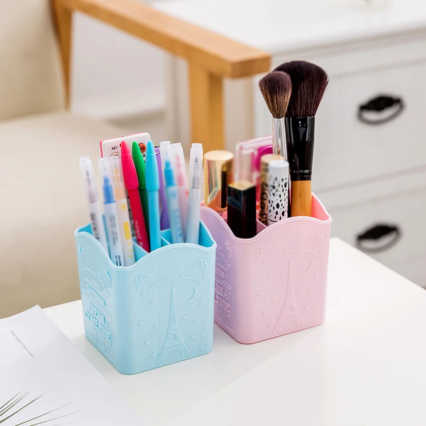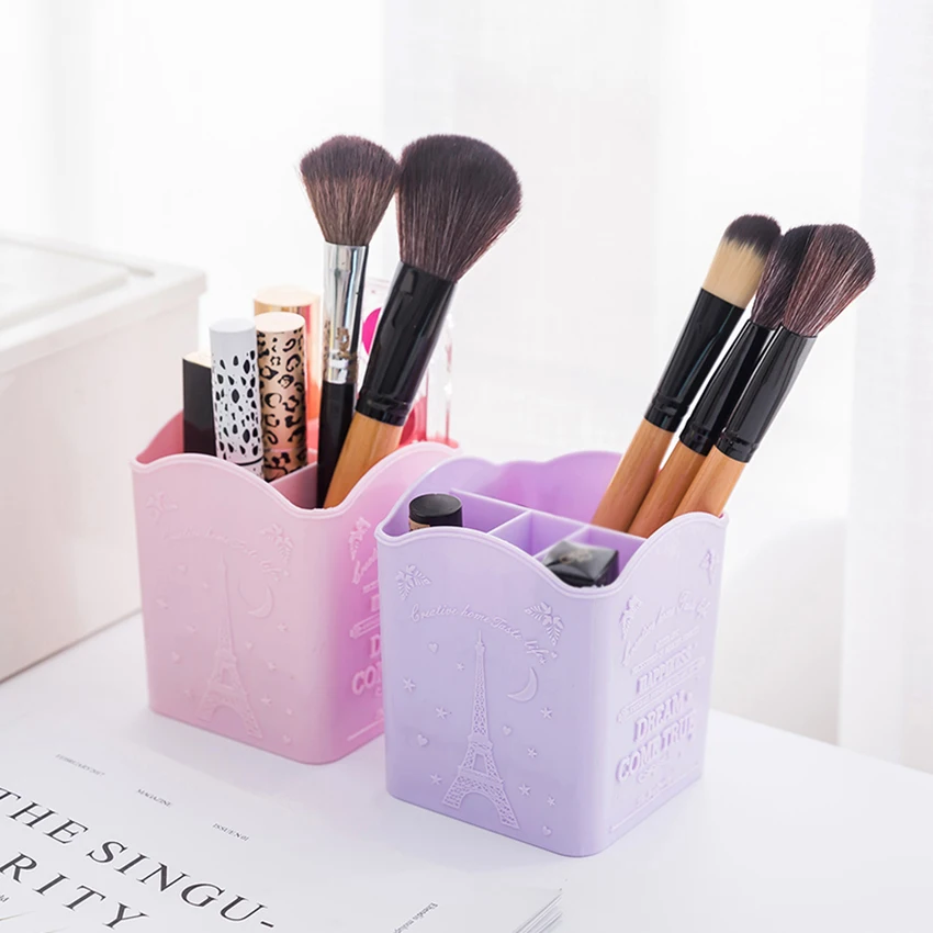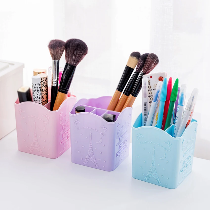 Promo 4-Slot Pen Organizer Storage Plastic Pen Storage Holder Desktop Compact Makeup Brush Storage Box fo